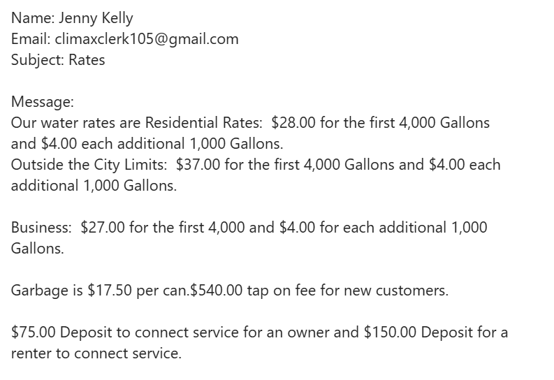 - Decreasing Block: Monthly Charge of $4.00 per 1000 gallons for consumption between 4001 - 100000 gallons