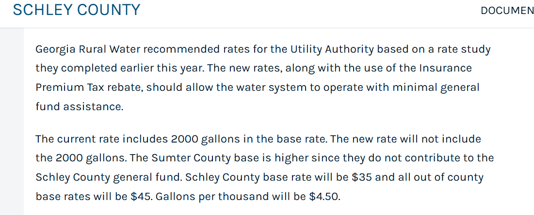 - Uniform Rate: Monthly Charge of $4.50 per 1000 gallons for consumption between 0 - 100000 gallons