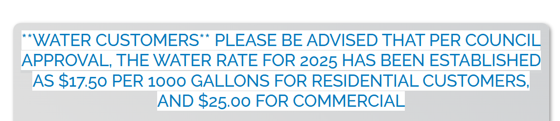 - Uniform Rate: Monthly Charge of $25.00 per 1000 gallons for consumption between 0 - 100000 gallons